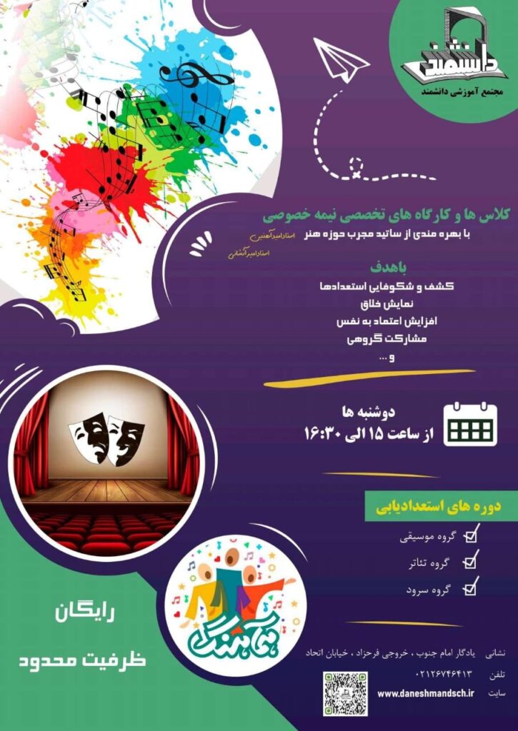 آغاز نام نویسی کلاس ها و کارگاه های سرود، موسیقی، تئاتر